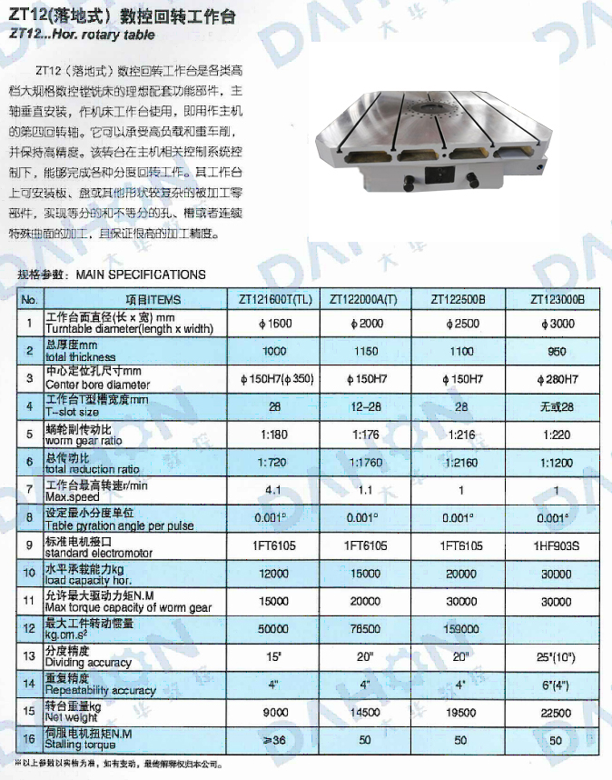 • 產(chǎn)品名稱: ZT12(重型)系列數(shù)控回轉(zhuǎn)工作臺(tái)